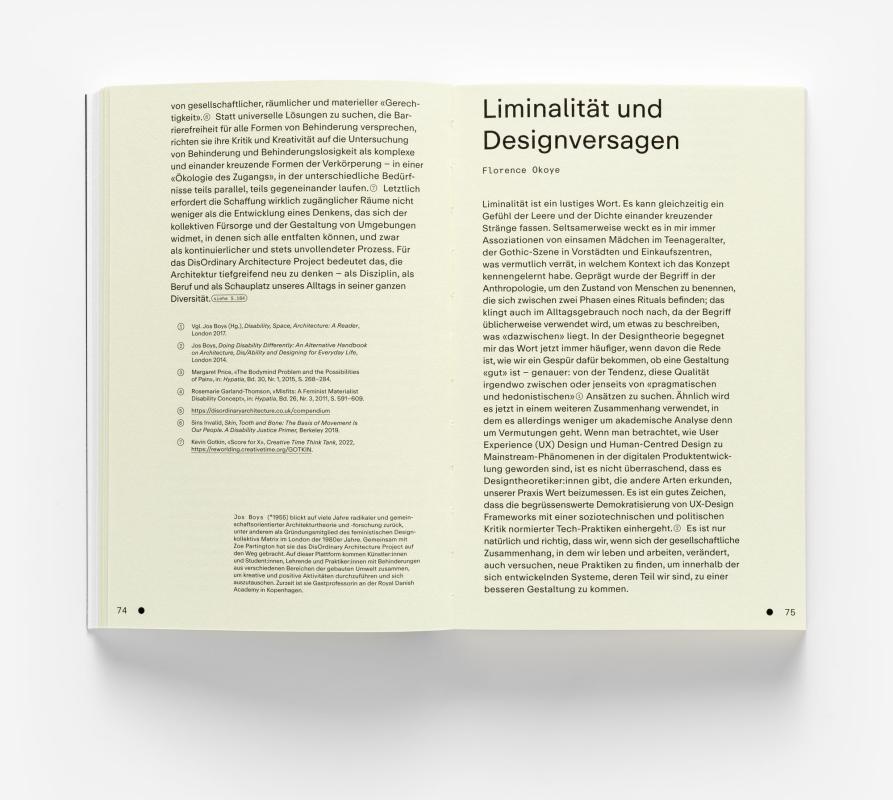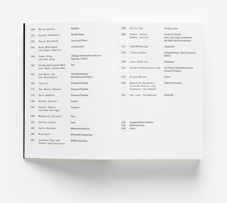 Mit Beiträgen von Quemuel Arroyo, Tom Bieling, Jos Boys, Hua Dong, Rama Gheerawo, Elizabeth Guffey, Aimi Hamraie, Grace Jun, Joe Manser, Florence Okoye, Gianna Rovere, Joel Sanders, Gabrielle Schaad, Markus Schefer, Cecile Shellman, Evelyn Steiner und Sara Zeller