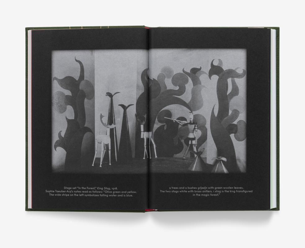 Die Marionetten zum Stück König Hirsch gehören längst zu den Ikonen der künstlerischen Avantgarde. Sophie Taeuber-Arp hat sie 1918 entlang ihrer Rollen als eigenwillige Charaktere mit geometrischen Körpern und maskenhaften Gesichtern geschaffen, als tänzerische Figuren mit angegriffenem Nervenkostüm in einer angespannten und intensiven Epoche. Die Künstlerin liess damit die konventionelle naturalistische Darstellungsform des Genres weit hinter sich. Mit der erstmaligen Veröffentlichung rückt die unterhaltsame Textvorlage der beiden Dramatiker René Morax und Werner Wolff nun zum illustren Ensemble auf. In der modernen Adaption des Theaterstücks Il re cervo von 1762 aus der Feder von Carlo Gozzi entfalten sich amouröse Handlungen sowie grober Zank und Handgemenge rund um die Brautschau des amtierenden Königs Deramo. Eine magische Statue fungiert als Werkzeug zur Seelenanalyse der Bewerberinnen – und der König verwandelt sich einstweilig in einen Hirsch.