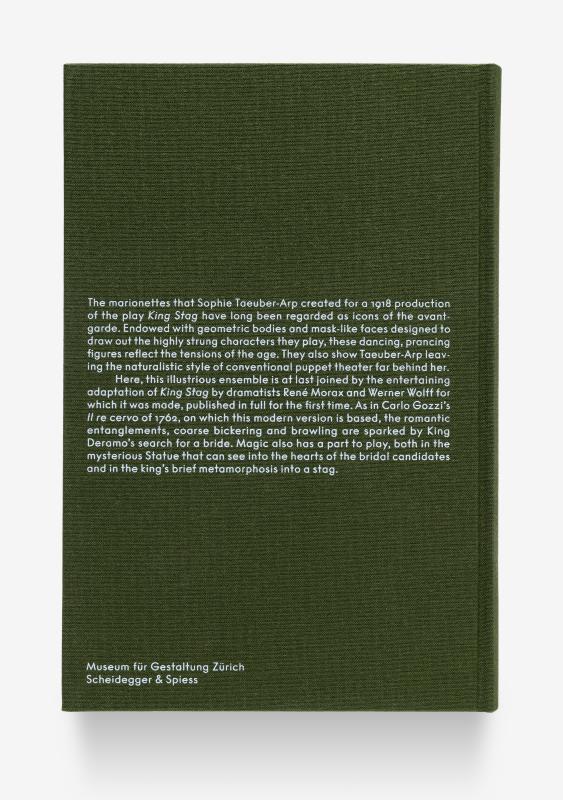 Die Marionetten zum Stück König Hirsch gehören längst zu den Ikonen der künstlerischen Avantgarde. Sophie Taeuber-Arp hat sie 1918 entlang ihrer Rollen als eigenwillige Charaktere mit geometrischen Körpern und maskenhaften Gesichtern geschaffen, als tänzerische Figuren mit angegriffenem Nervenkostüm in einer angespannten und intensiven Epoche. Die Künstlerin liess damit die konventionelle naturalistische Darstellungsform des Genres weit hinter sich. Mit der erstmaligen Veröffentlichung rückt die unterhaltsame Textvorlage der beiden Dramatiker René Morax und Werner Wolff nun zum illustren Ensemble auf. In der modernen Adaption des Theaterstücks Il re cervo von 1762 aus der Feder von Carlo Gozzi entfalten sich amouröse Handlungen sowie grober Zank und Handgemenge rund um die Brautschau des amtierenden Königs Deramo. Eine magische Statue fungiert als Werkzeug zur Seelenanalyse der Bewerberinnen – und der König verwandelt sich einstweilig in einen Hirsch.