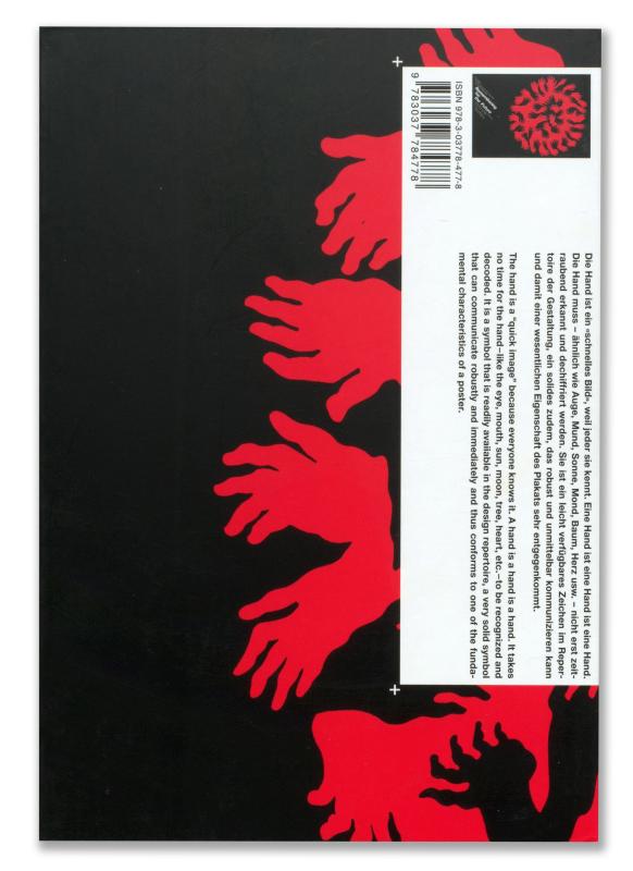 Mimik und Gestik sind die bedeutendsten nichtsprachlichen Verständigungsmittel des Menschen. Nicht von ungefähr sind Gesicht und Hand daher auch beliebte Motive in der visuellen Kommunikation. Die Plakatgeschichte ist besonders reich an Hand-Variationen: In Konsumplakaten präsentiert die Hand begehrte Produkte oder veranschaulicht den Gebrauch bestimmter Artikel. Sie ist aber auch symbolisch aufgeladene Gebärde im politischen Plakat: als gereckte Faust, appellativer Zeigefinger oder gewalttätige Pranke. Zum Zeichen des gestaltenden und kreativ schaffenden Menschen wird die Hand vor allem in Kulturplakaten verwendet. Ebenso vielseitig wie die Rhetorik der Hand ist auch ihre gestalterische Umsetzung. Fotografische, illustrative oder auch grafisch-abstrahierte Darstellungen ergänzen sich zu einer kleinen Kulturgeschichte der Hand als Ausdruck vielsagender Botschaften.