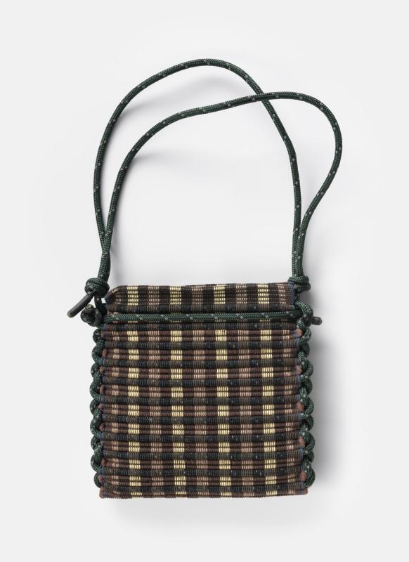 Die Textilkünstlerin Estelle Bourdet erforscht mit grosser Sachkenntnis und Engagement das textile Handwerk, indem sie zeitgenössische und analoge Techniken miteinander verbindet. Sie rekontextualisiert die Herstellung von Flickenteppichen und beschäftigt sich mit langsamer Produktion und nachhaltigen Ressourcen. Ihre Stücke fertigt sie aus wiederverwerteten Materialien. Diese handgefertigte Tasche besteht aus einem einzigen gewobenen Paneel. In die Baumwollkette werden reflektierendes PP-Seil und recycelte gedrehte Baumwollstoffe eingearbeitet, wodurch eine einzigartige und äusserst durable Struktur entsteht. Innen befindet sich ein Baumwollbeutel. Eine wiederverwendete Paragleitschnur mit Karabiner bietet eine Sicherungsmöglichkeit für Schlüssel oder andere wertvolle Gegenstände. Dank des verstellbaren Henkels kann die Tasche sowohl als Handtasche als auch als Crossbody-Bag getragen werden.