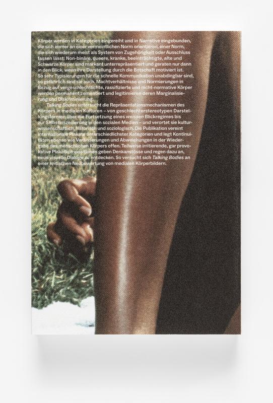 Talking Bodies untersucht die Repräsentationsmechanismen des Körpers in medialen Kulturen – von geschlechterstereotypen Darstellungsformen über die Fortsetzung eines weissen Blickregimes bis zur Selbstinszenierung in den sozialen Medien – und verortet sie kulturwissenschaftlich, historisch und soziologisch. Die Publikation vereint internationale Plakate unterschiedlichster Kategorien und legt Kontinuitäten ebenso wie Veränderungen und Abweichungen in der Wiedergabe des menschlichen Körpers offen. Teilweise irritierende, gar provokative Plakatkompositionen geben Denkanstösse und regen dazu an, neue visuelle Dialoge zu entdecken. So versucht sich Talking Bodies an einer kritischen Neubewertung von medialen Körperbildern.