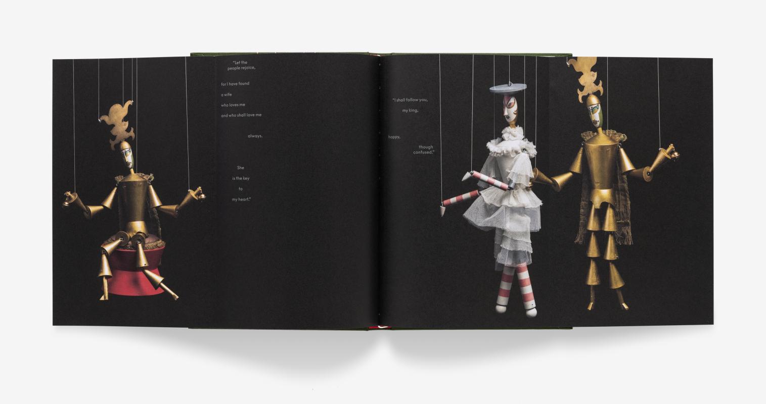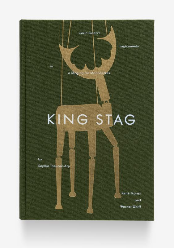 Die Marionetten zum Stück König Hirsch gehören längst zu den Ikonen der künstlerischen Avantgarde. Sophie Taeuber-Arp hat sie 1918 entlang ihrer Rollen als eigenwillige Charaktere mit geometrischen Körpern und maskenhaften Gesichtern geschaffen, als tänzerische Figuren mit angegriffenem Nervenkostüm in einer angespannten und intensiven Epoche. Die Künstlerin liess damit die konventionelle naturalistische Darstellungsform des Genres weit hinter sich. Mit der erstmaligen Veröffentlichung rückt die unterhaltsame Textvorlage der beiden Dramatiker René Morax und Werner Wolff nun zum illustren Ensemble auf. In der modernen Adaption des Theaterstücks Il re cervo von 1762 aus der Feder von Carlo Gozzi entfalten sich amouröse Handlungen sowie grober Zank und Handgemenge rund um die Brautschau des amtierenden Königs Deramo. Eine magische Statue fungiert als Werkzeug zur Seelenanalyse der Bewerberinnen – und der König verwandelt sich einstweilig in einen Hirsch.