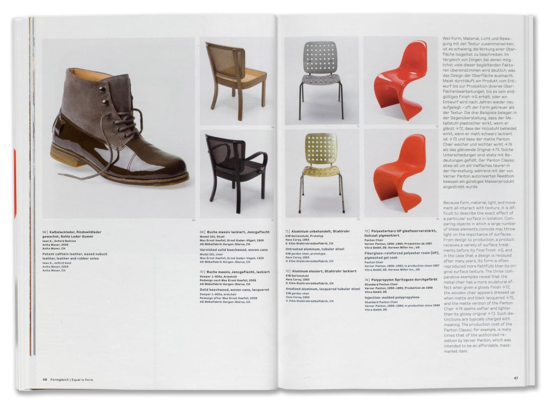 Anmut, Funktion und Bedeutung eines Designprodukts hängen wesentlich von der Gestaltung der Oberfläche ab. Je nach Textur erscheint zum Beispiel ein glänzender Panton Chair wertvoller als ein matter, eine Verchromung kann schützen oder täuschen, ein Metallic-Lack erinnert an Autos und Fingernägel, Patina lässt auf ein Alter schliessen. Neben solchen Werten, vermittelt durch visuelle und taktile Reize, interagieren funktionale Coatings mit ihrer Umwelt. Sie wirken je nach Bedarf haftend, abweisend, aseptisch oder leitend. Wie gehen Entwerfer mit diesem kreativen Potenzial um? Make up präsentiert Designklassiker im Dialog mit Produkten zeitgenössischer Designer wie Big-Game, Front, Naoto Fukasawa, Alfredo Häberli, Kenya Hara, Jasper Morrison oder Patricia Urquiola.