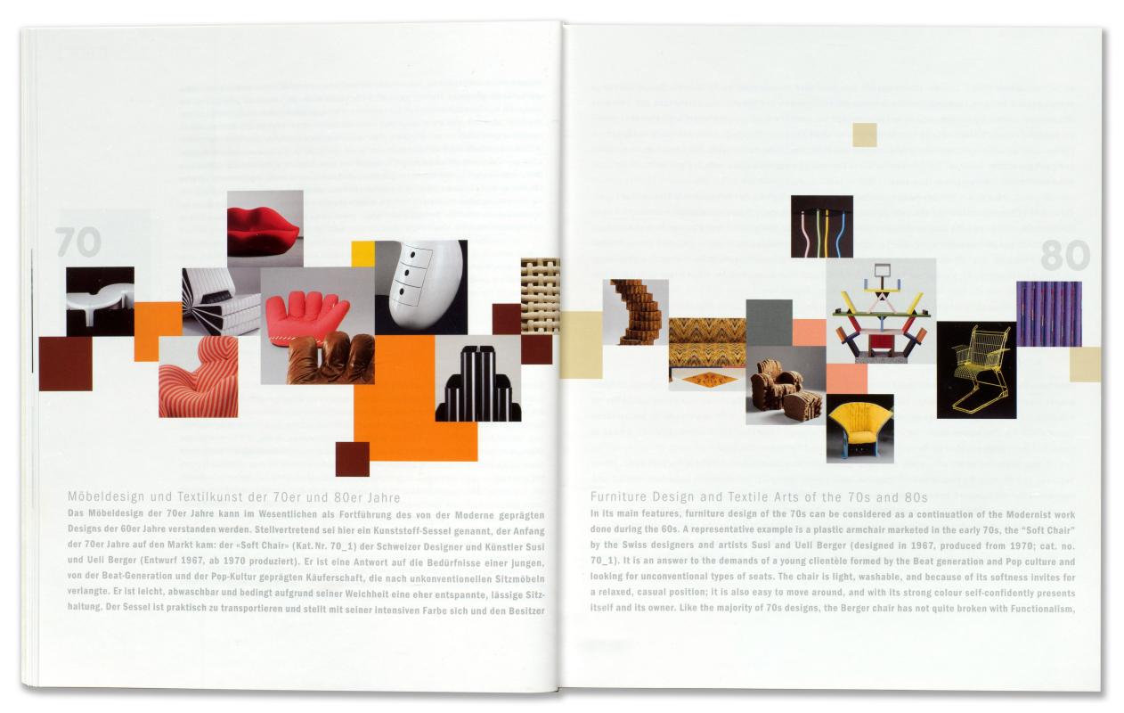 Die Ausstellung und das Buch 70s versus 80s spüren der je eigenen Ästhetik der 70er und 80er Jahre nach. Sie präsentieren radikales Möbeldesign von Gestaltern wie Luigi Colani, Ettore Sottsass oder Alessandro Mendini, aber auch Glas-, Keramik- und Textilobjekte, deren Formen für die beiden Jahrzehnte charakteristisch sind. Eine Besonderheit stellt hierbei die Wiederherstellung einer Glasinstallation dar, welche die amerikanischen Künstler Dale Chihuly und James Carpenter Anfang der 70er Jahre im Museum Bellerive eingerichtet hatten, die aber seit längerer Zeit hinter einer Wand verstaut war. Dieser originalen Installation aus den 70er Jahren ist ein raumfüllendes Werk der Schweizer Künstler Lang/Baumann gegenübergestellt, das - eigens für diese Ausstellung geschaffen - ganz Produkt der Gegenwart ist und dennoch in seiner Formensprache unmittelbar auf die Ästhetik der 70er Jahre zurückgreift.