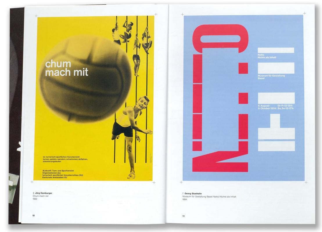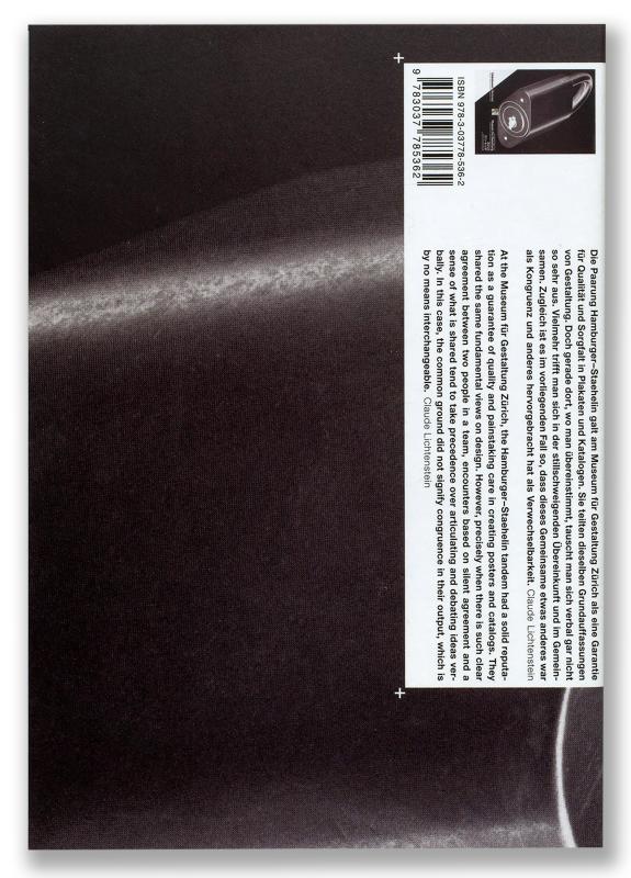 Während Staehelin über viele Jahre hinweg für den Auftritt des Basler Museum für Gestaltung zuständig war, schuf Hamburger schon ab den 1960er-Jahren Plakate für Ausstellungen des Zürcher Kunstgewerbemuseums. Ein stärkeres Festhalten an der Tradition prägt Hamburgers Schaffen, während Staehelins experimentelle Offenheit zu überraschenden Umsetzungen führt. Die gegenseitige Anerkennung und die Fruchtbarkeit des fachlichen Austausches beider Gestalter manifestieren sich in Gemeinschaftswerken: sensibel ausgelotete Plakate für das Museum für Gestaltung, die grafische Gesetzmässigkeiten und kreative Gestaltungslust aufs Schönste zusammenführen.