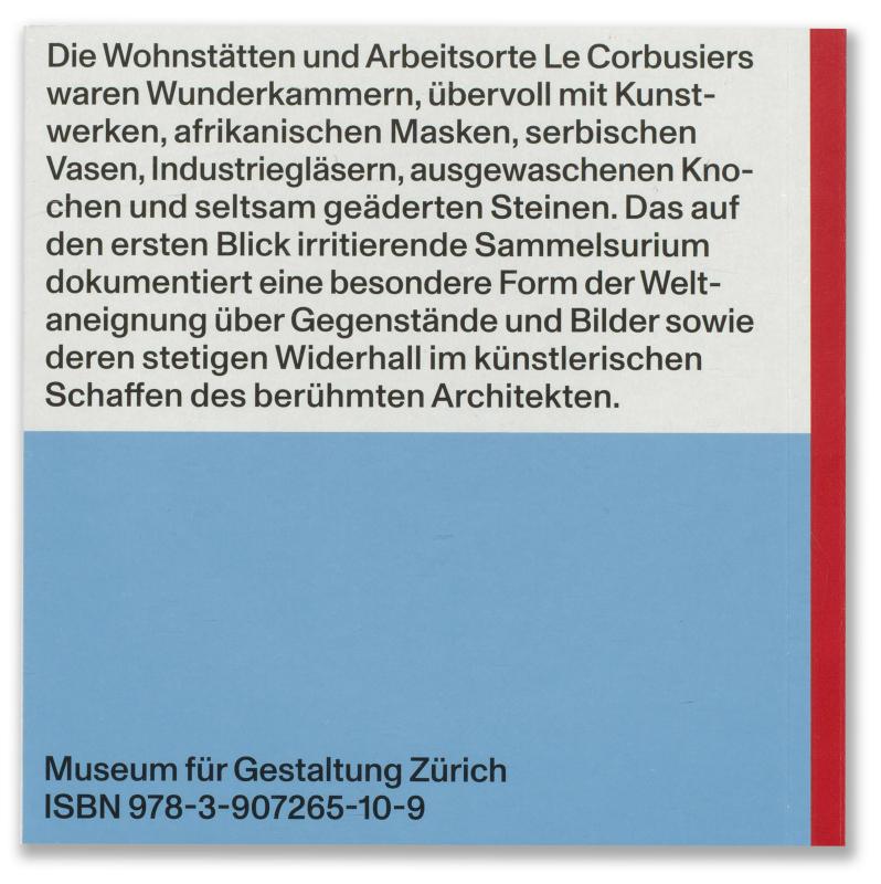 Die Wohnstätten und Arbeitsorte Le Corbusiers waren Wunderkammern, übervoll mit Kunstwerken, afrikanischen Masken, serbischen Vasen, Industriegläsern, ausgewaschenen Knochen und seltsam geäderten Steinen. Das auf den ersten Blick irritierende Sammelsurium dokumentiert eine besondere Form der Weltaneignung über Gegenstände und Bilder. Die Publikation zur Ausstellung Mon univers im Zürcher Pavillon Le Corbusier dokumentiert eine Auswahl aus dem umfangreichen Bestand an originalen Sammlungsstücken, den die Fondation Le Corbusier in Paris aufbewahrt. Sie fokussiert auf die Identifikation der Objekte sowie deren Zuordnung zu den einzelnen Schaffensperioden und Wohnsituationen des berühmten Architekten.